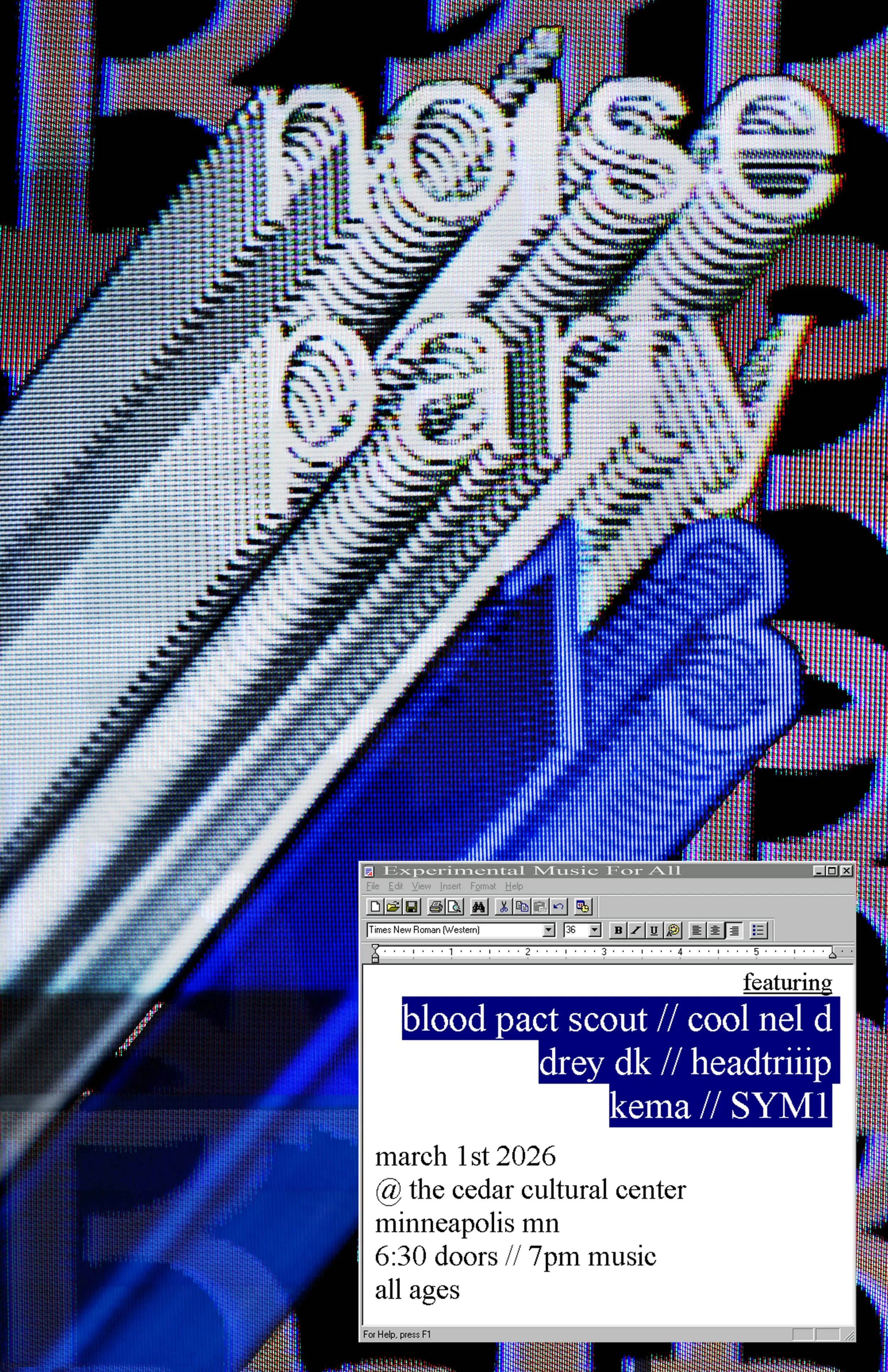Noise Party, now on its 13th edition, is the premiere Minneapolis based experimental music series that highlights the best established and underground artists from numerous musical backgrounds. Each Noise Party event is curated to offer the most coherent yet diverse batch of music to widen your senses. Noise Party is not a traditional concert, as artists will play back to back in batches of three, with an intermission dividing the night. Accompanied by live analog-based visuals, Noise Party is an immersive audio-visual experience that is nothing like you’ve ever seen before. Each Noise Party is a completely different experience from the last, so come and see what volume 13 has to offer March 1st at the Cedar.